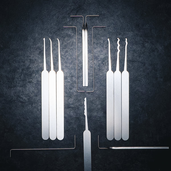 Sparrows Tuxedo er et ideelt valg for deg som ønsker et pålitelig og effektivt dirkesett til diskret hverdagsbruk (EDC). Settet er utviklet for både nybegynnere og profesjonelle, og inneholder 7 allsidige dirker – inkludert én tynn dirk for smale nøkkelkanaler – samt 6 spennverktøy i ulike bredder.